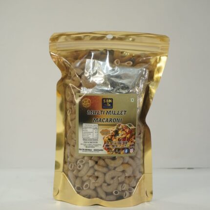 SBN Fods Millet Macaroni is a healthy, nutritious pasta made from a blend of millets offering high fiber, iron, calcium, and low glycemic index, ideal for balanced diets, weight management, and better blood sugar/cholesterol control. It's a tasty alternative to regular pasta, easily cooked in boiling water and mixed with vegetables for a quick meal.